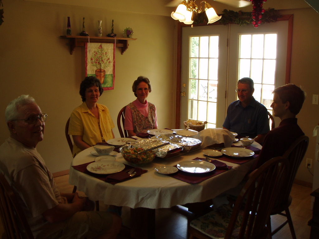 Photo Caption: Sabbath Dinner with Daniel's parents and grandparents. Show AllShow All
