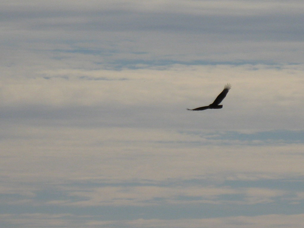 Photo Caption: One of the birds flying overhead. Show AllShow All