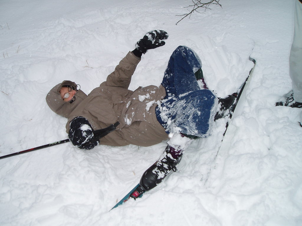 Step nine: Helplessly try to get up from the downhill position with skis and poles going their own way. Try to find an uphill point to make a snow angel next time.