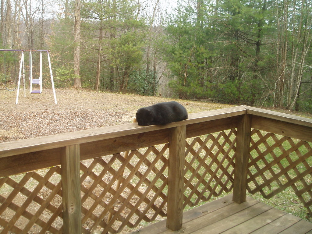 Photo Caption: Claws was very happy to have us home again! Here's her favorite spot to sleep--right outside the dining room door where she can keep an ear on us. Show AllShow All