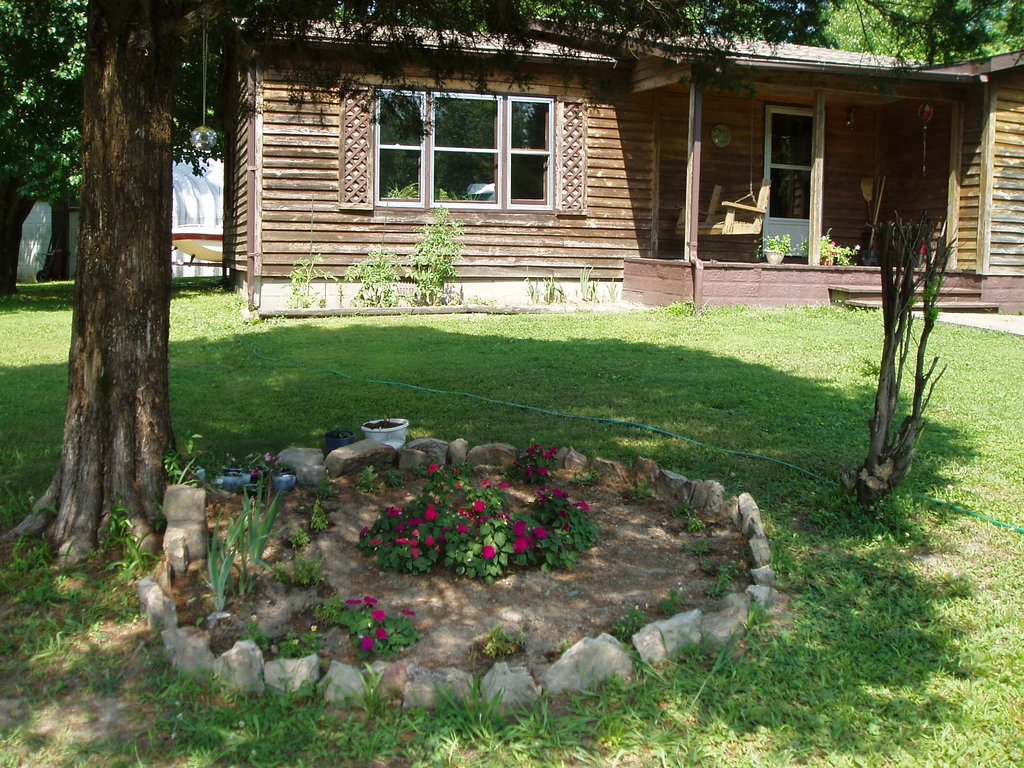 Photo Caption: Here's our shade flower garden--the prettiest one by far! All those impatients were started off two little plants someone gave me last summer! (And more are in the house ready to plant soon). Show AllShow All