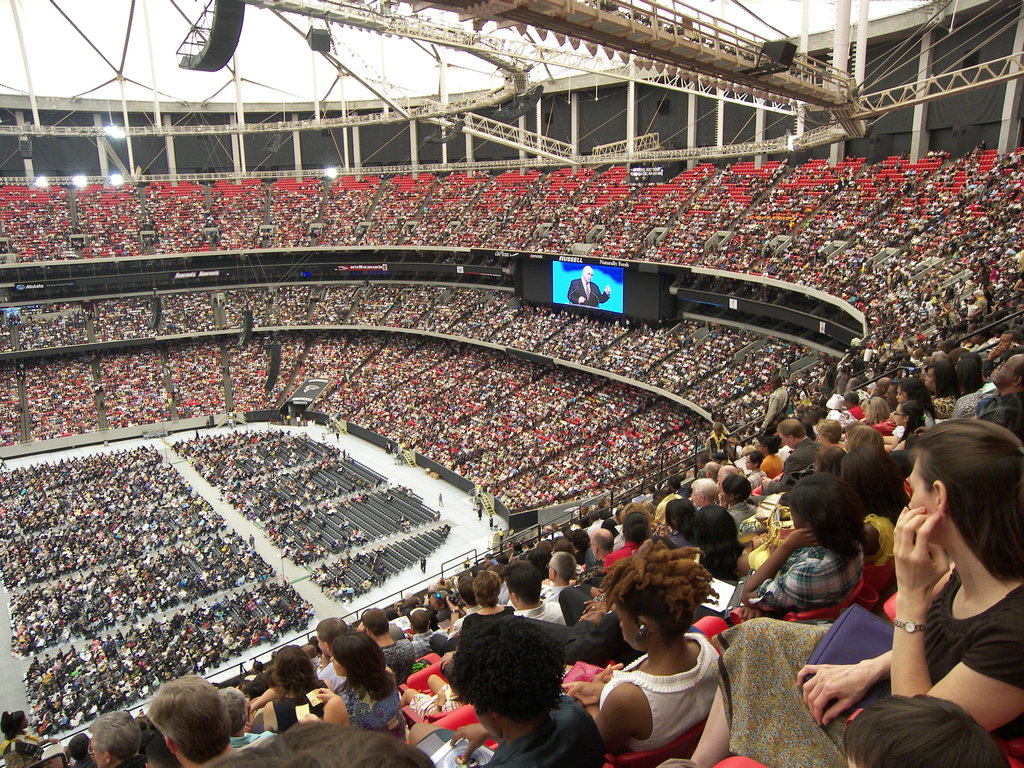 Main meeting hall crowded with people. It was estimated at around 70,000 by the second weekend!