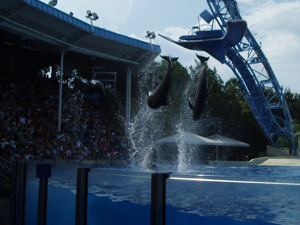 Photo Caption: Four dolphins flipping in the air at once Show AllShow All
