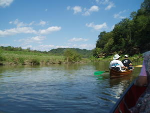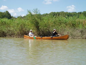We met Daniel's parents at fishing creek. Lucas was in the canoe with Daniel's Dad, and Mom rode with us in the other canoe.