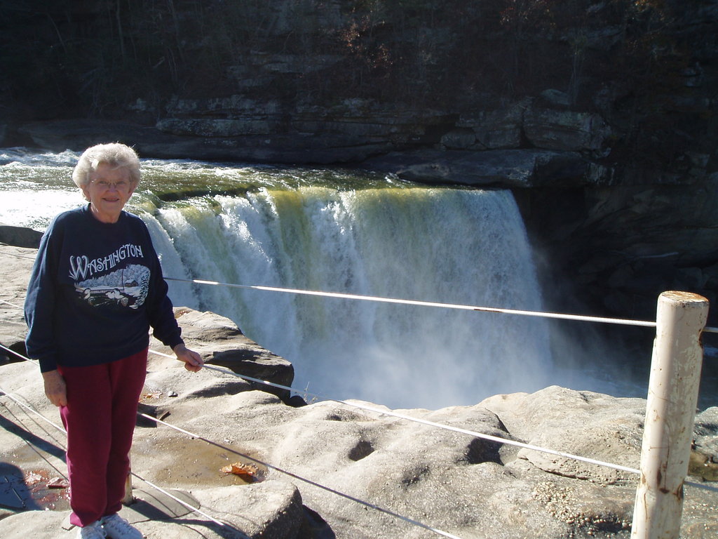 Grandma by the falls