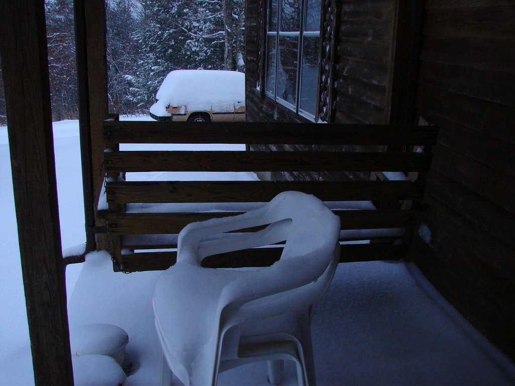 Photo Caption: Our front covered porch... with blown snow drifting in. Show AllShow All