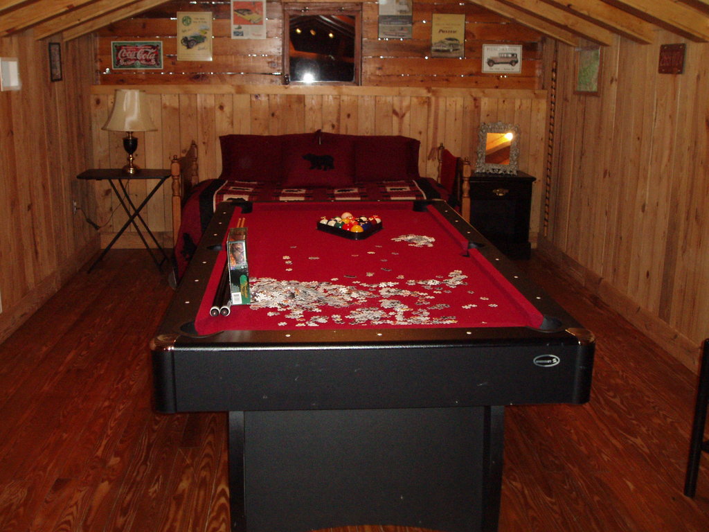 Photo Caption: Upstairs in the loft was a large pool table. We used it as our puzzle table! :) Show AllShow All