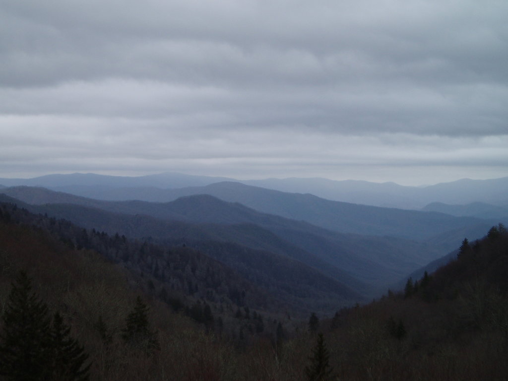 Our best view of the Smokies, just as the rain clouds were rolling in. It gave unique color variations!