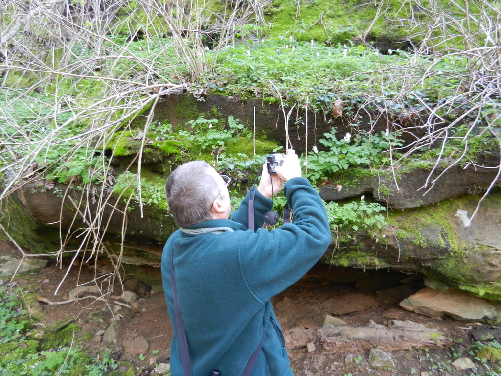 Dad taking a photo of all the Dutchmen's Britches along the bank.