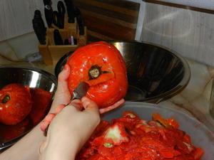 It's time for tomatoes! Once again, Kim had the a-peeling job. :)