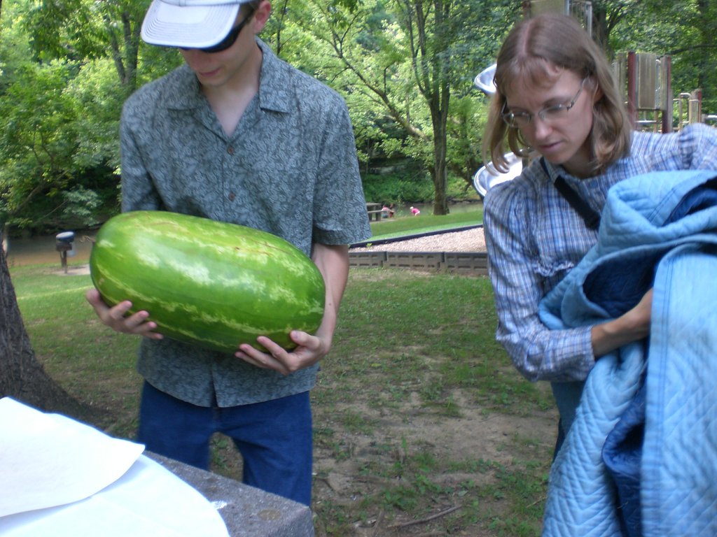 ....watermelon! lol Ok. that's an inside joke. Kristina wrapped the watermelon in a blanket to keep it cold, because it was too big for the ice chest. His mother saw her carrying this wrapped blanket and asked if it was a baby!