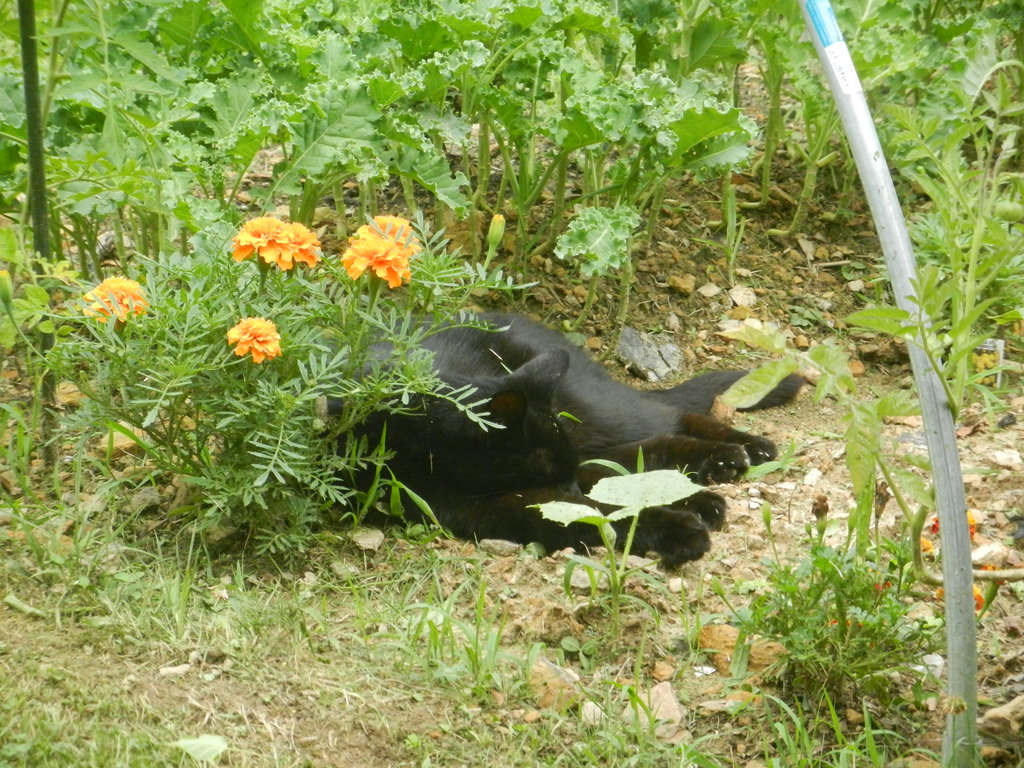 Photo Caption: Claws enjoying a nap in the garden shade. Show AllShow All