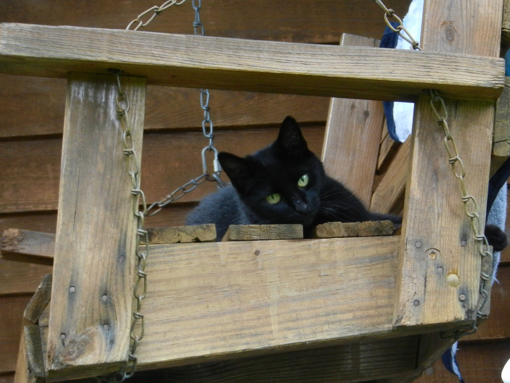 Photo Caption: Claws enjoying her favorite spot--the swing on our front porch. Show AllShow All