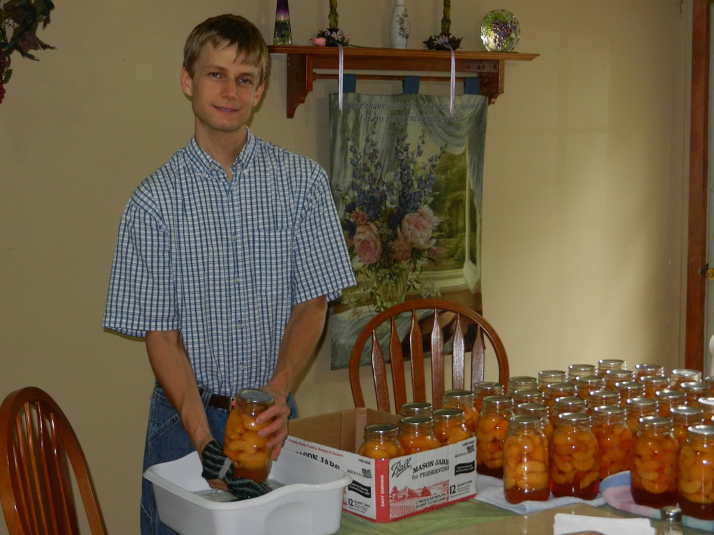 Photo Caption: Daniel washing off the finished jars--60 quarts! Show AllShow All