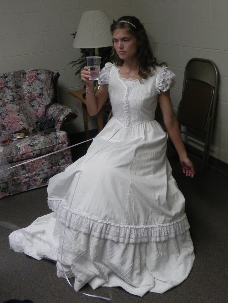 Photo Caption: Laura getting her last minute refreshments in. She made her own dress--it was beautiful! Show AllShow All