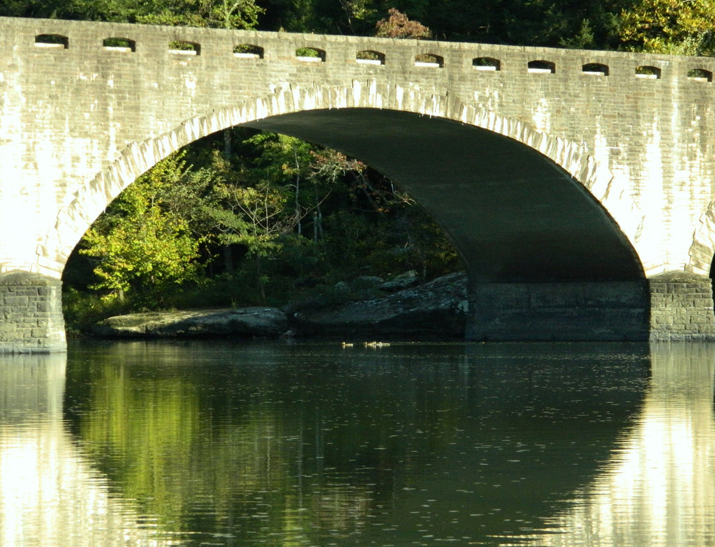 Photo Caption: Ducks swimming under Moonbow Bridge. Show AllShow All