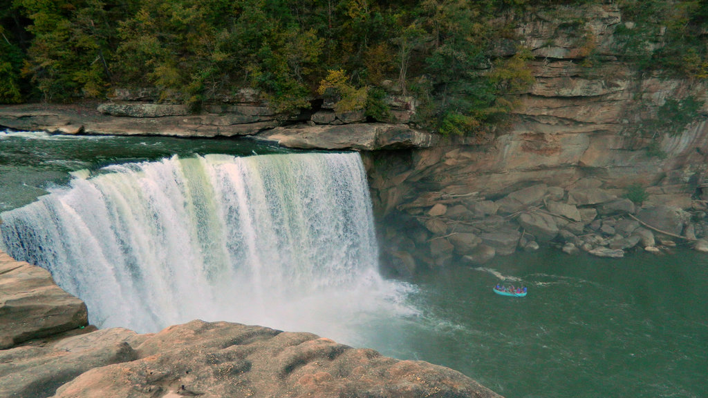 Cumberland Falls' size takes on a new dimension when you see a boat-load of people looking like a tiny toy at the base of the falls!