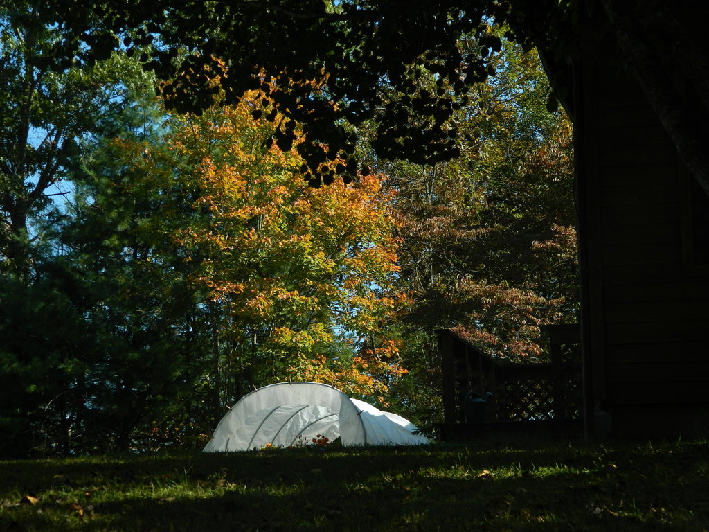 Photo Caption: Fall colors in the backyard (Kristina's fall garden is under the white tent). Show AllShow All