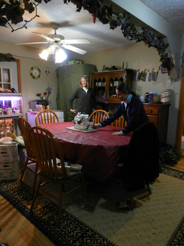 Kristina and Kimberly worked to take down the Thanksgiving decorations and put up the Christmas decorations while Daniel set up the tree in the living room.