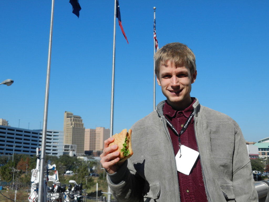 Daniel eating lunch before heading on outreach.