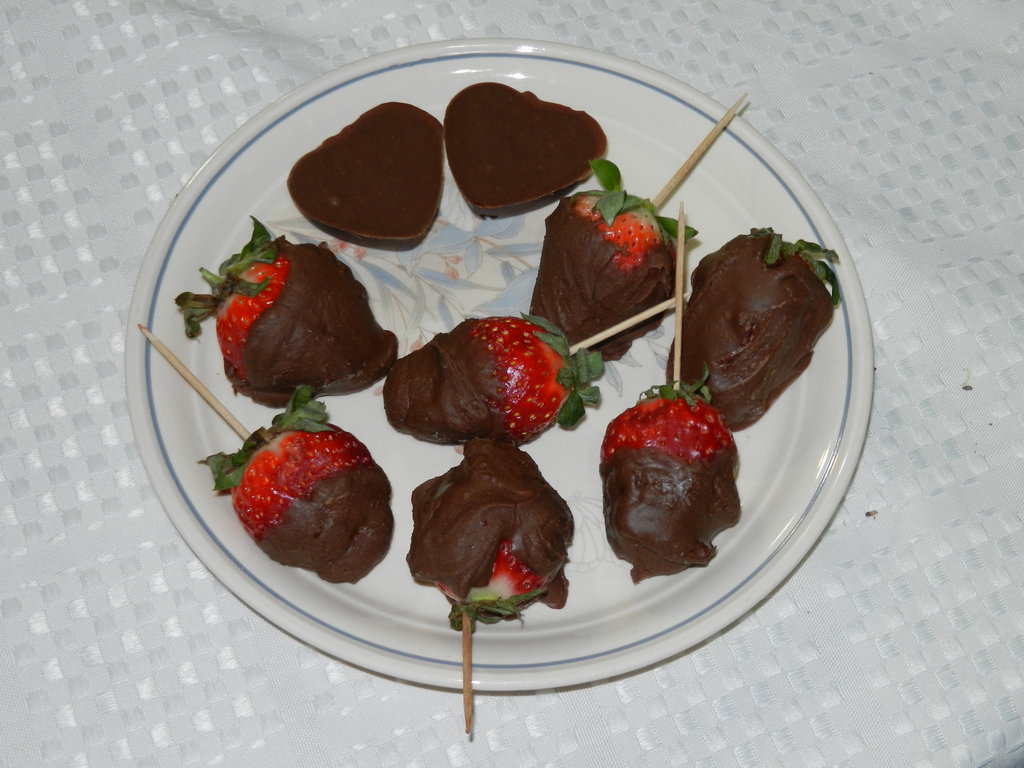 Photo Caption: Here's leftovers from the Valentine's cooking class. Carob dipped strawberries and carob/almond hearts! Show AllShow All