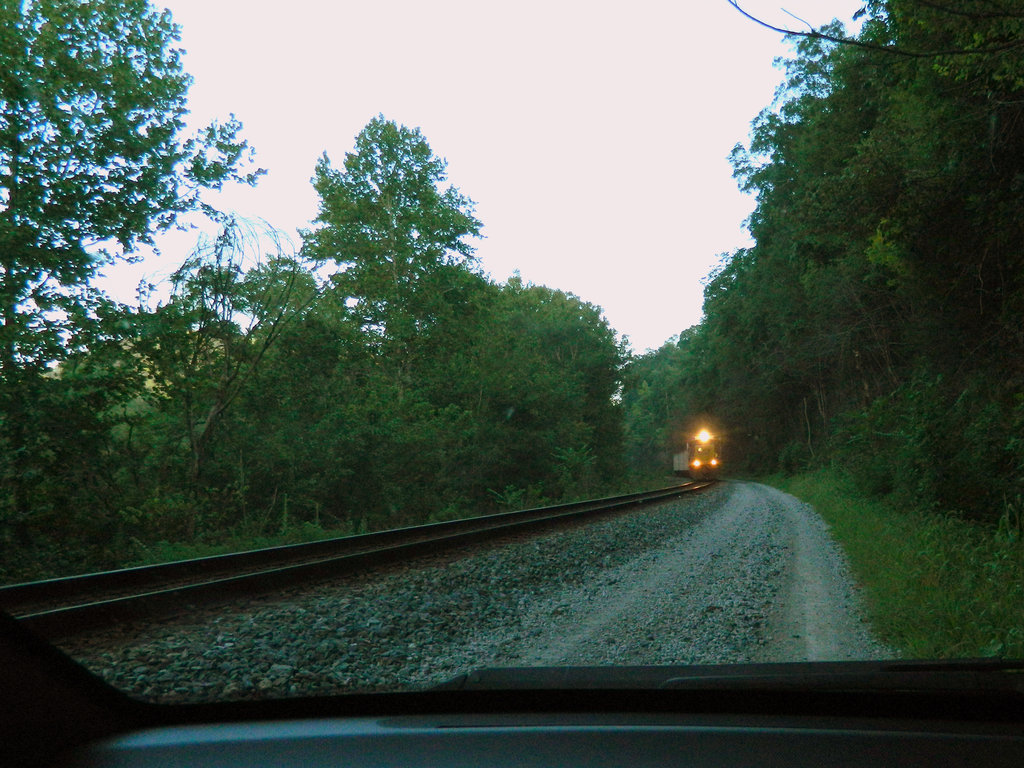 Photo Caption: One of Daniel's canvassing adventures took him down a gravel driveway on the edge of the train track. And wouldn't you know it--here comes the train! Show AllShow All