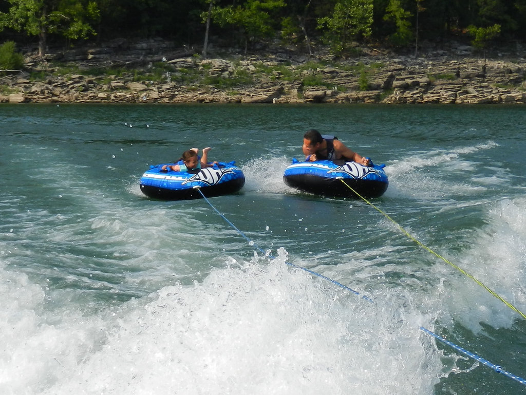 Photo Caption: Aleki and his daughter tubing. Show AllShow All