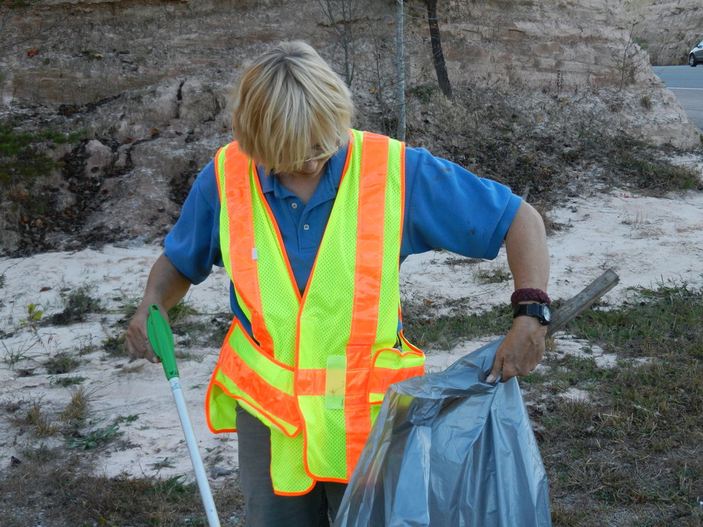 Photo Caption: Homemakers picked up trash again! Here is Pam hard at work. Show AllShow All