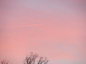 Airplane through the sunset