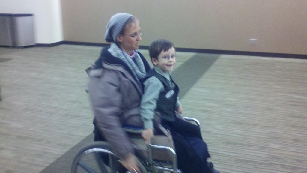 Photo Caption: Kristina gave our little friend his first ride in a wheelchair! Show AllShow All