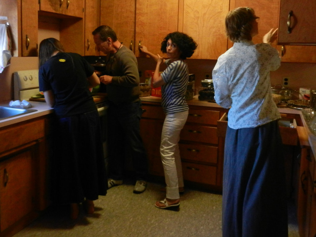 Photo Caption: The crew in the kitchen making fruit salad for the reception. Show AllShow All